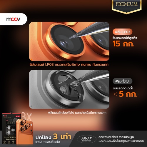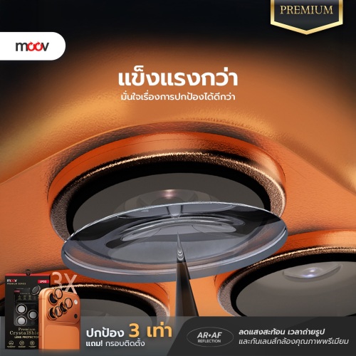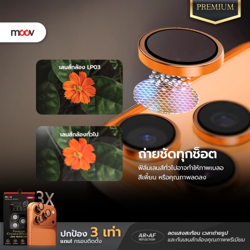 Moov LP03 Premium Crystal Sheild Lens Protector 3X Strong ความแข็งแรงของกระจกเลนส์ 3 เท่า ฟิล์มกระจกกันรอย ครอบเลนส์กล้อง ช่วยปกป้อง และกันรอย ไม่ให้เกิดรอยขีดข่วนบนเลนส์กล้อง สามารถติดตั้งได้ง่ายๆ มีบล๊อคติดตั้ง และสามารถใช้แผ่น Remover เพื่อถอดฟิล์มกล้องอันเก่าออกได้ง่ายๆ