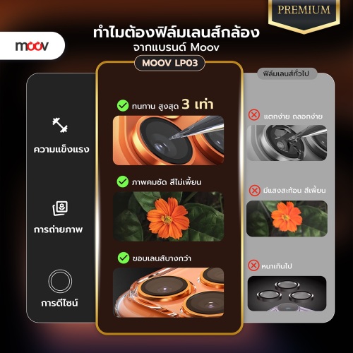 1 x Moov LP03 กระจกกันรอยเลนส์กล้อง ตามรุ่นของโทรศัพท์