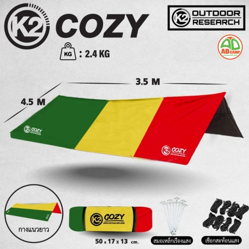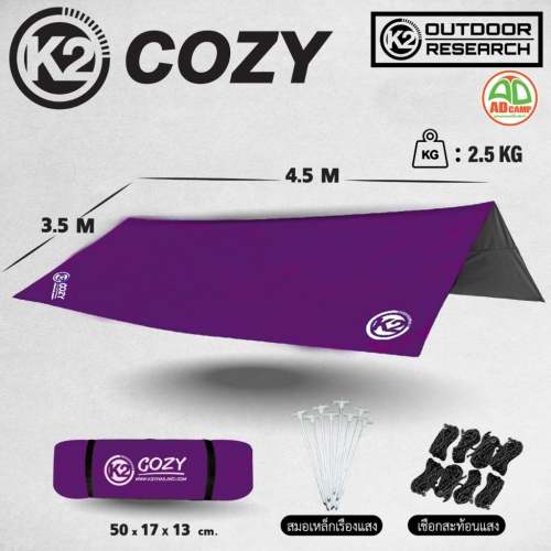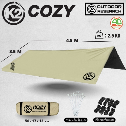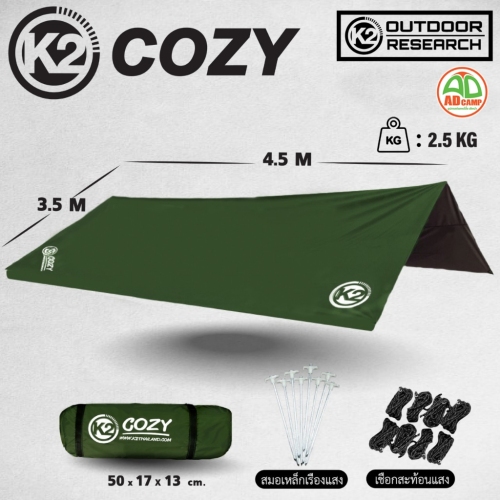K2 Cozy Tarp ทาร์ปแคมป์ปิ้ง ฟลายชีท สำหรับกางเต็นท์ เคลือบ PU กันแดด ลดความร้อน กันน้ำ 6000 mm.