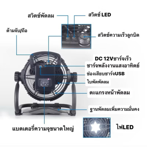 #พัดลมแคมป์ปิ้ง #พัดลมโซล่าเซลล์ #พัดลมมีแบตในตัว #พัดลมพกพา #พัดลม