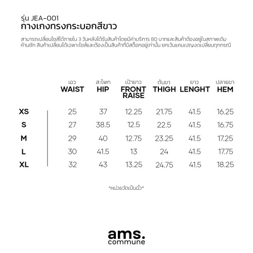 • ไซส์ XS เอว 25” สะโพก 38.5”