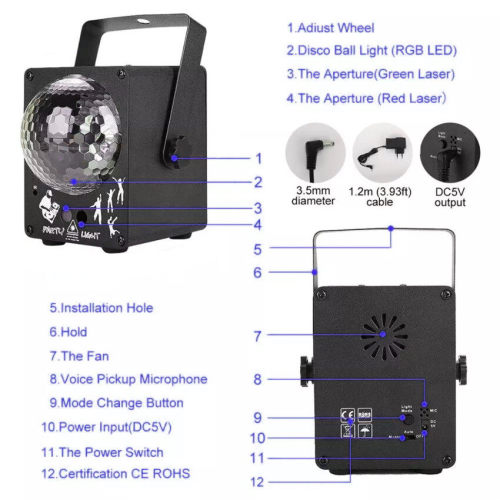LED Discoไฟเลเซอร์โปรเจคเตอร์RGBไฟปาร์ตี้60รูปแบบDJไฟดิสโก้เลเซอร์ปาร์ตี้วันหยุดคริสต์มาสแสงเวทีผล EU Plug One