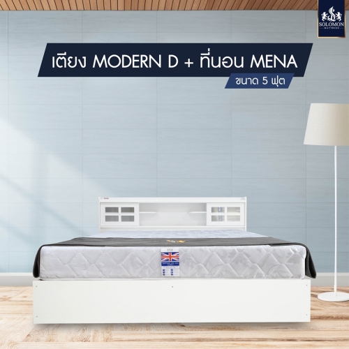 ขนาด 5 ฟุต ที่นอนสปริงรุ่น Mena ความหนา 9 นิ้ว สีขาว 1 หลัง เตียงโมเดิร์น D 1 ชุด