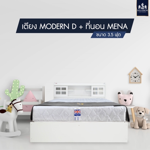 ขนาด 3.5 ฟุต ที่นอนสปริงรุ่น Mena ความหนา 9 นิ้ว สีขาว 1 หลัง เตียงโมเดิร์น D 1 ชุด