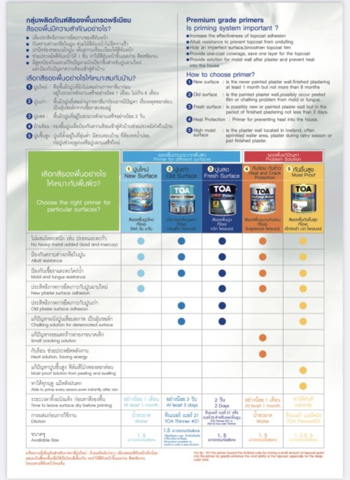 เหมาะสำหรับใช้ทารองพื้นปูน คอนกรีต หรือปูนฉาบที่มีการทาสีมานานและสภาพสีเดิมหลุดออกหรือฟิล์มสีเก่าเป็นฝุ่นชอล์ค