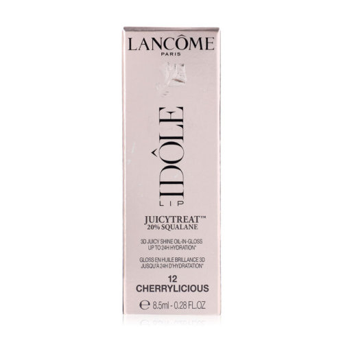 Lancome Lip Idole Juicytreat 8.5ml #12 Cherrylicious ลิปกลอสเนื้อออยล์ ไม่เหนียวเหนอะหนะ ติดทนนาน ด้วยเทคโนโลยีไฮบริด Serum-In-Oil อัดแน่นด้วยสารสกัดจากสควาเลน 20%, กุหลาบเซนติโฟเลีย และน้ำมันเปปเปอร์มินต์ ช่วยฟื้นบำรุงริมฝีปาก และเติมความชุ่มชื้นอย่างล้ำลึก ให้คุณสร้างริมฝีปากฉ่ำวาวแบบ 3 มิติได้อย่างเพอร์เฟกต์