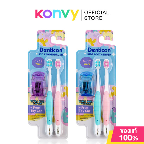 Denticon Kids Toothbrush 6-12yrs 2pcs [Free! Toy Car Random Color] เดนติคอน แปรงสีฟันสำหรับเด็กอายุ 6-12 ปี