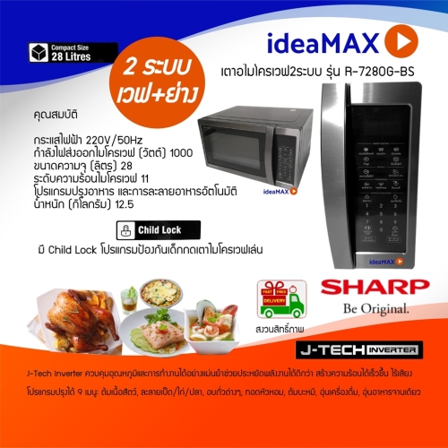 คุณสมบัติความจุ 28 ลิตร กำลังไฟไมโครเวฟ 900w กำลังไฟย่าง 1000wระบบ J-TECH Inverter convention ประหยัดไฟได้ดีกว่าระบบเดิม ร้อนเร็วกว่าและไร้เสียงรบกวน
