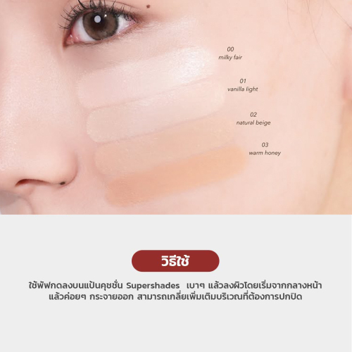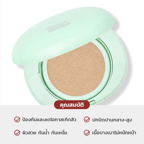 • จุดเด่น: คุชชั่นเนื้อ Semi-matte สูตรพิเศษสำหรับผิวที่เป็นสิวและผิวแพ้ง่าย ปกปิดจุดบกพร่องได้อย่างเป็นธรรมชาติ พร้อมบำรุงและปกป้องผิวด้วยสารสกัดจากธรรมชาติ