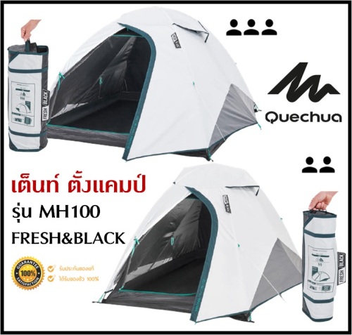 Product Details Reviews (0) Add to Cart Home Product Details พร้อมส่ง QUECHUA เต็นท์ ตั้งแคมป์ รุ่น MH100 FRESH BLACK ขนาด 2-3 คน แข็งแรง กันแดด UV99% กันน้ำได้ดี กาง/จัดเก็บง่าย ของแท้100% สำหรับ 2 คน One 5 พร้อมส่ง QUECHUA เต็นท์ ตั้งแคมป์ รุ่น MH100 FRESH BLACK ขนาด 2-3 คน แข็งแรง กันแดด UV99% กันน้ำได้ดี กาง/จัดเก็บง่าย ของแท้100% สำหรับ 2 คน One ฿ 2,971.00 3,219.00 8%off Tcoin Earn up to Tcoins Tcoins can be used as a deduction for the next purchase of Thisshop product; the received Tcoins will be calculated based on the actual payment amount. Ship to Province City Area Shipping Quantity Add to Cart Buy Now TPayLater Product Details Reviews (0) เตรียมสินค้าและจัดส่ง 1-2 วัน ตามรอบการจัดส่ง (ตัดยอดทุก 18.00) จัดส่งได้ทุกวัน ยกเว้นวันอาทิตย์ในบางขนส่ง QUECHUA เต็นท์ ตั้งแคมป์ รุ่น MH100 FRESH BLACK ขนาด 2-3 คน แข็งแรง กันแดด UV99% กันน้ำได้ดี กาง/จัดเก็บง่าย สินค้า แท้ 100% เต็นท์ที่ราคาคุ้มค่ารุ่นนี้ผ่านการทดสอบความทนทานและการกันน้ำทั้งหมดของเรา โครงสร้างรูปโดมตั้งได้อิสระ ย้ายที่กางเต็นท์หาจุดที่ดีที่สุดได้ง่ายหลังประกอบแล้ว คุณสมบัติ- ประกอบง่าย : โครงสร้างตั้งได้อิสระ เสาติดตั้งง่าย- ลดความร้อน : ส่วนระบายอากาศด้านข้างและผ้า Fresh & Black เหมาะแก่การนอน- ความทนทาน : ทนน้ำค้าง ทนลมได้ดี ต้านทานลมเร็ว 50 กม./ชม. (Force 6): ทดสอบในอุโมงค์ลมบนพื้นหมุน- กันน้ำ : การทดสอบแรงดันน้ำ (Schmerber): ฟลายชีต > 2000 มม. แผ่นปูพื้น > 5000 มม.- ป้องกันลม : ทนแรงลมได้ 40 กม./ชม. (Force 5): ผ่านการทดสอบด้วยการวางบนแท่นหมุนในอุโมงค์ลม- ปิดแสง : เนื้อผ้าภายนอก FRESH & BLACK จดสิทธิบัตรแล้ว: ป้องกันแสงได้ถึง 99% แม้ในเวลาแดดจ้า รุ่น Fresh & Black แตกต่างจากตัวธรรมดา :- รุ่น Fresh & Black จะมีเทคโนโลยีการทอผ้าและเคลือบกันแสง UV ได้ถึง 99% After Sale Support