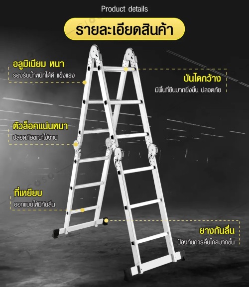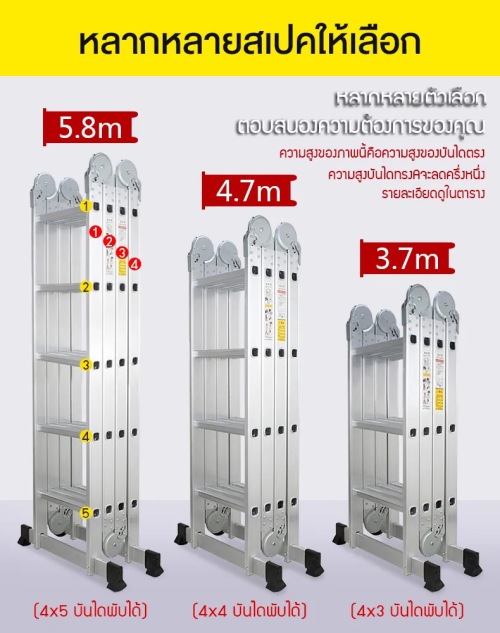 ระยะห่างระหว่างขั้นบันไดแต่ละชั้น 30 ซม. บันไดอเนกประสงค์ ผลิตจากอลูมิเนียมคุณภาพดี