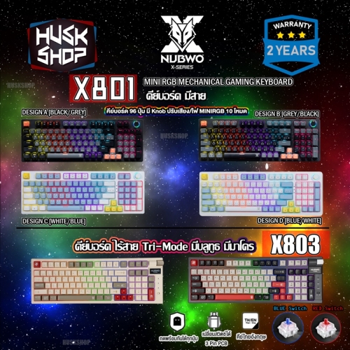 NUBWO THANATOS X802 Mini RGB Mechanical Keyboard 97 Keys คีย์บอร์ดเมคานิคอล ปร