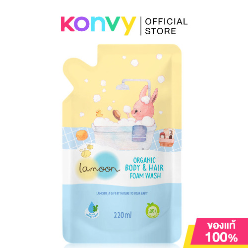 Lamoon Organic Body and Hair Wash Foam Refill 220ml โฟมอาบน้ำเด็ก ออร์แกนิค 2 in 1 สองฟังก์ชั่นในขวดเดียวเป็นได้ทั้งสบู่อาบน้ำเด็ก และยาสระผม บริสุทธิ์จากธรรมชาติ 100% ไม่ก่อให้เกิดการระคายเคือง ใช้งานง่ายด้วยฟังก์ชั่นหัวปั๊ม อุด