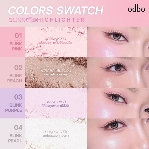 ไฮไลท์เนื้อเนียนละเอียด เม็ดสีแน่น เกลี่ยง่าย ไม่เป็นคราบ ติดทนนาน ช่วยเพิ่มความแวววาวเล่นแสง ให้ผิวดูโกลว์สวย มีออร่า มอบฟินิชลุคเปล่งประกาย โดดเด่นทุกสายตา มาพร้อมดีไซน์แพ็คเกจทรงลูกบาศก์สุดคิวท์ ใช้ง่าย พกพาสะดวก