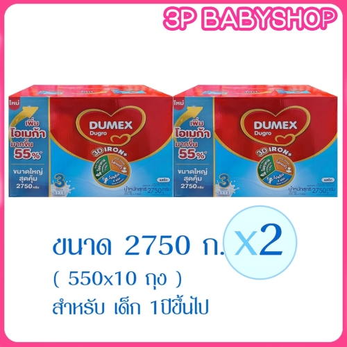 ดูเม็กซ์ ดูโกร 3 ซูเปอร์ มิกซ์ รสจืด 2,750 กรัม ผลิตภัณฑ์นมพร่องมันเนยชนิดละลายทันที สำหรับเด็กอายุ 1 ปีขึ้นไปและทุกคนในครอบครัว ช่วยเสริมสร้างพัฒนาการที่สำคัญหลากหลายสมวัย ทั้งพัฒนาการทางด้านการเรียนรู้ ความคิดสร้างสรรค์ สุขภาพที่ดี อารมณ์แจ่มใส และการเจริญเติบโตทางร่างกายที่สมบูรณ์