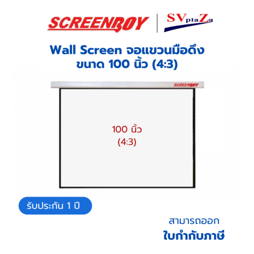 ScreenBoy Wall Screen 100 นิ้ว 4:3 จอแขวนมือดึง (60 x 80inch) (152 x 204 cm) สำหรับฉาย projector จอม้วนเก็บอัตโนมัติ