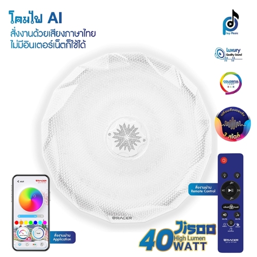 : ลำโพงบลูทูธให้เสียงคุณภาพสูง (Luxury Quality Sound) และระบบสั่งงานด้วยเสียงภาษาไทยที่ไม่ต้องมีอินเตอร์เน็ตก็สั่งงานได้ พร้อมเสียงตอบรับโคมไฟที่เลือกได้ถึง 3 สไตส์เสียงตอบรับ