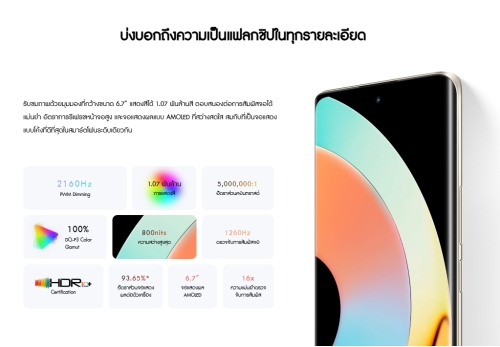 ✔️จอแสดงผล AMOLED 10-bit (1.07 พันล้านสี)
