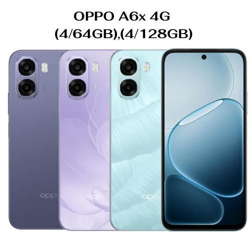 OPPO A6x 4G สมาร์ทโฟนสุดคุ้มแบตอึด 6500mAh จอใหญ่ 6.75" 120Hz ใช้งานลื่นไหลด้วย Snapdragon 685 พร้อมกล้องคู่ 13MP ถ่ายชัดทุกสถานการณ์ รองรับ SD Card สูงสุด 2TB ให้ความจุแบบจัดเต็ม ดีไซน์สีสวยโดนใจ น้ำหนักกำลังดี พร้อมอุปกรณ์ครบชุดในกล่อง