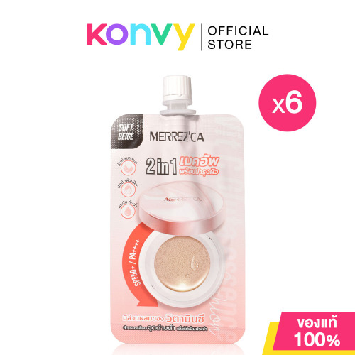 Merrezca Vit C Gluta Essence Cushion Sachet [5g x 6pcs] #23 Soft Beige คุชชั่นวิตชีกลูต้าแบบซอง เนื้อบางเบา กันน้ำ กันเหงื่อ ไม่เป็นคราบ ติดทนนาน ด้วยนวัตกรรมใหม่ที่นำคุชชั่นผสานกับพลังเอสเซนส์บำรุงผิว ดูแลแบบ 2in1 ช่วยปกปิดผิวได้เรียบเนียน พร้อมผสาน Vitamin C และ Glutathione ช่วยปรับสีผิวให้สม่ำเสมอ แลดูกระจ่างใส มอบฟินิชผิวเนียนสวย ดูไบร์ทเป็นธรรมชาติ