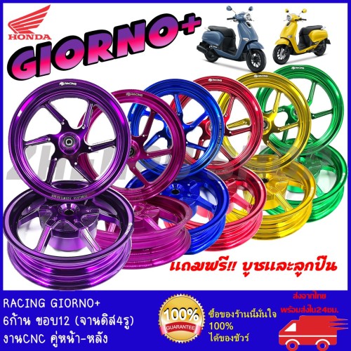 ล้อแม็ก CNC จีออโน่+ จีออโน่125 GIORNO+ GIORNO125 มี5สี ขอบ 2.50 นิ้ว กว้าง 12 นิ้ว งานสวยตรงรุ่น-สีม่วง (PURPLE)-สีน้ำเงิน (BLUE)-สีแดง (RED)-สีทอง (GOLD)-สีเขียว (GREEN)