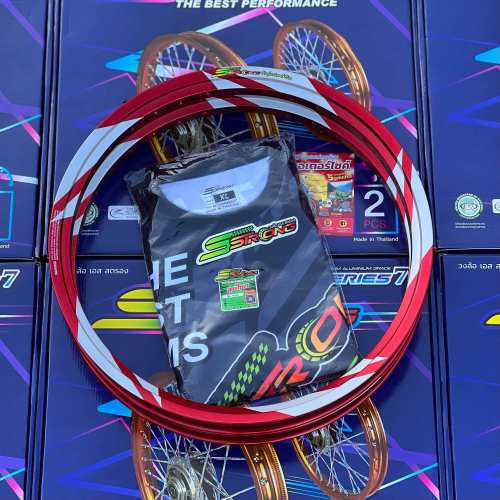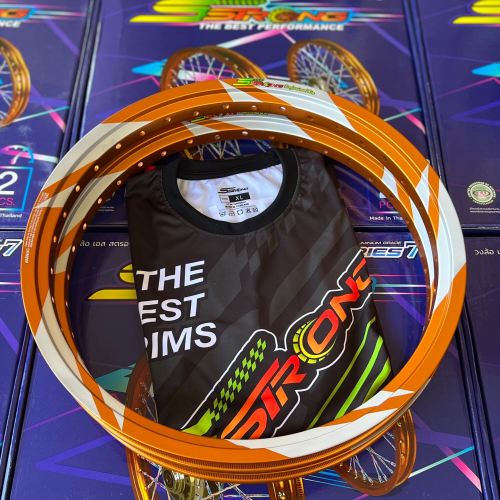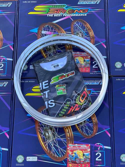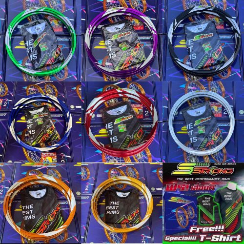 วงล้อสายฟ้า SStrong ลายสายฟ้า 1.4ขอบ17 มีสีทองเข้ม ทองอ่อนราคาต่อ 1 คู่งานยิงทรายแถมเสื้อ1ตัวฟรีของแท้100% สีเขียว One
