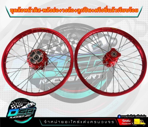 ชุดล้อเวฟ110i หน้าดิสสีแดง+ดุมหลังย่อสีแดง พร้อมใส่ Wave110i/เวฟ110i 2009-2022 Super cup ประกอบด้วยวงล้อ/ดุมย่อ/ซี่ลวด/ชุดลูกปืน (แยกได้)