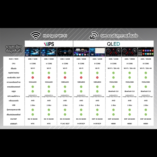 3.หน้าจอ Qled :RAM6GB , ROM128GB รองรับการแสดงผล 2 หน้าจอ ระบบเสียง 48 Band EQ เต็มรูปแบบ **ฟังก์ชั่นซิมการ์ด 4G คาร์เพลย์ไร้สายและ Android Auto ระบบกล้องพาโนรามา 360 2K HD