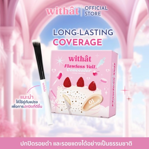 • ใช้แปรงแต้มเนื้อคอนซีลเลอร์เพื่อปกปิดรอยดำ รอยแดง หรือรอยสิว และค่อยๆเบลนด์ให้ทั่วบริเวณที่มีรอย เพื่อผลลัพธ์ที่ดีควรใช้คู่กับแปรงคอนซีลเลอร์วิทแทท