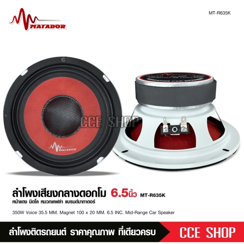-ลำโพงกลาง6.5นิ้ว MT-R635K แม่เหล็ก100*20 หน้าแดง วอยส์35.5mm MATADOR 1คู่