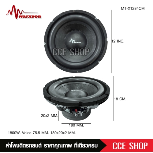 -ซับ12นิ้วโครงหล่อ 180*20/2 วอยส์คู่ โครงเงา วอยส์ดำ MATADOR 2ดอก