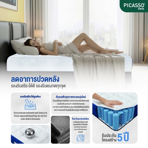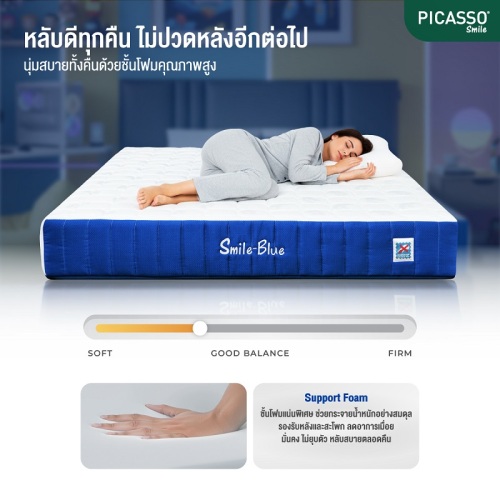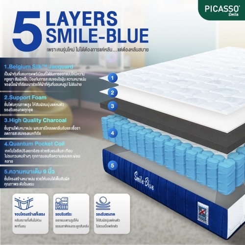 ✨✨ 🆕 ที่นอนพ็อกเก็ตสปริง รุ่น Picasso Smile Blue หนา 9 นิ้ว [รับประกัน 5 ปี] ✨✨