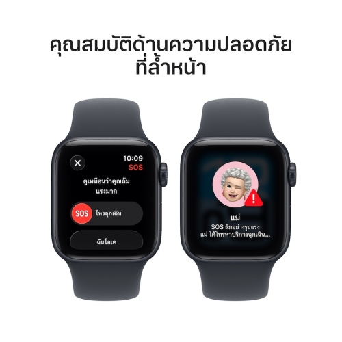คุณสมบัติด้านความปลอดภัย—SE 3 สามารถตรวจจับการล้มอย่างรุนแรงหรือเหตุรถชนอย่างรุนแรง และจะติดต่อบริการฉุกเฉินให้คุณโดยอัตโนมัติ พร้อมแจ้งเตือนผู้ที่อยู่ในรายชื่อติดต่อฉุกเฉินของคุณ6 ส่วนคุณสมบัติเช็คอินก็จะแจ้งเตือนคนที่คุณรักโดยอัตโนมัติเมื่อคุณเดินทางถึงที่หมาย