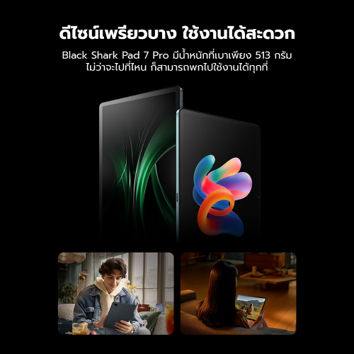 - เพรียวบางใช้งานได้สะดวก Black Shark Pad 7 Pro มีน้ำหนักเพียง 513 กรัม