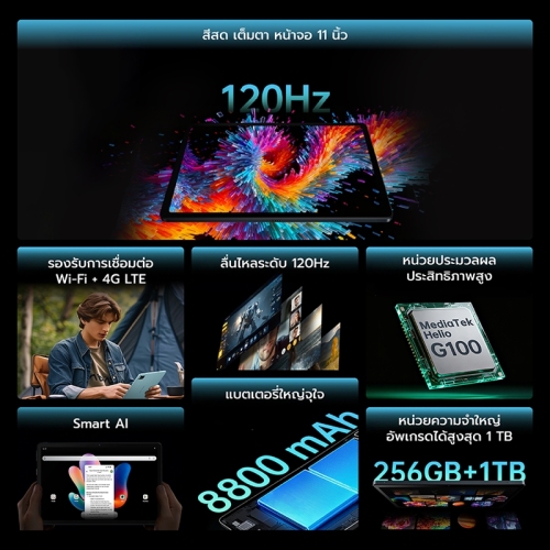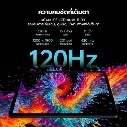 - คมชัดเต็มตา ด้วยหน้าจอ IPS LCD ขนาด 11 นิ้ว ลื่นไหลระดับ 120Hz