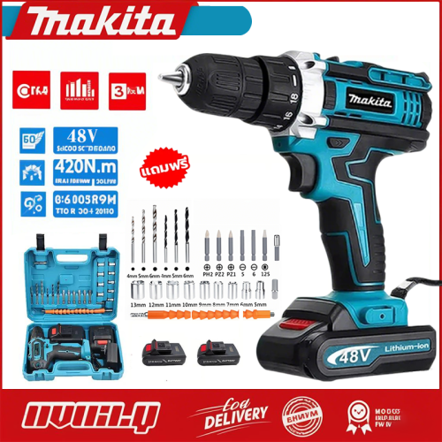 แท้ 100% สว่านไร้สายMAKITAสว่านไฟฟ้ากระแทก 399V ชุดดอกเจาะ ไขควง สว่านไฟฟ้าไร้สาย 3ระบบ มีระบบกระแทก แบต 2ก้อน เจาะกระแทกได้ เหมาะสำหรับเจาะคอนกรีต เหล็ก ไม้ เจาะปูน เจาะเหล็ก ไฟฟ้ากระแทก สว่าน สว่านแบตไร้สาย สว่านแบตเตอรี่ Electric drill battery*1/399V