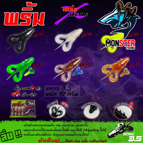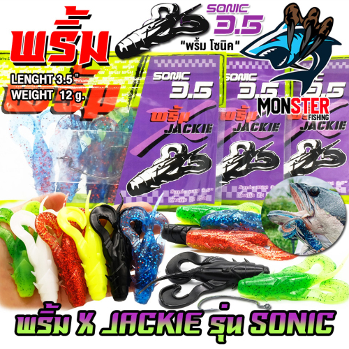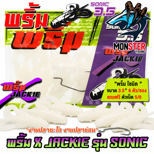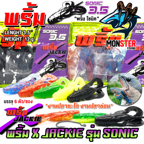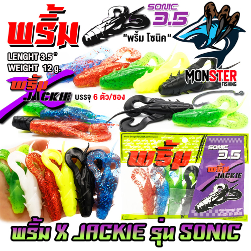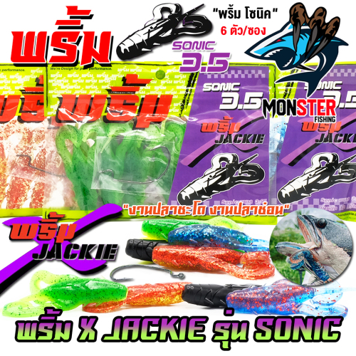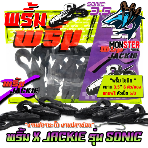 เหยื่อตกปลา เหยื่อยาง พริ้ม X JACKIE รุ่น SONIC โซนิค by พริ้ม ลัวร์ (1 ซองมี 6 ตัว เบ็ดฟรี 1 ดวง)
