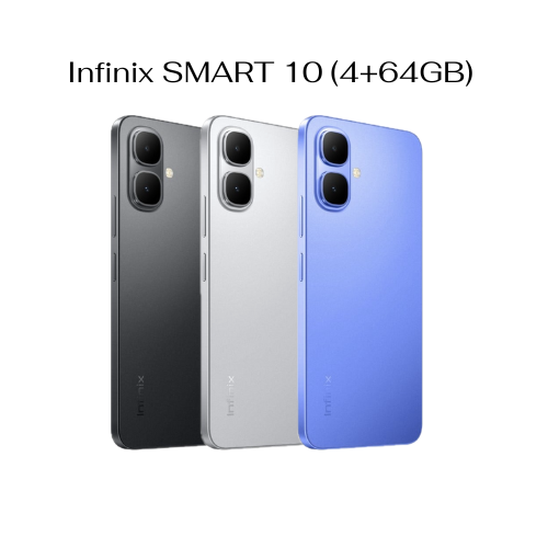 Infinix SMART10 มือถือสเปคครบครันในราคาสุดคุ้ม มาพร้อมจอขนาดใหญ่ รีเฟรชเรท 120HZ จอไหลลื่น 700Nits อ่านชัดภายใต้แสงแดด มาตรฐาน IP64 ทนทานต่อฝุ่นและน้ำ แบตอึดทนนาน ลำโพงคู่ 300% พร้อมสแกนลายนิ้วมือด้านข้าง พร้อมให้คุณสนุกทุกจังหวะ