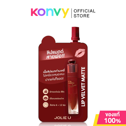 JOLIEU Lipstick Matte Velvet Smooth 2g #16 Ban Yen ลิปเนื้อแมทกำมะหยี่แบบซอง ที่ให้สัมผัสบางเบาเป็นพิเศษ สีชัดติดทน ปกปิดริมฝีปากเรียบเนียน ไม่ทำให้ปากแห้ง