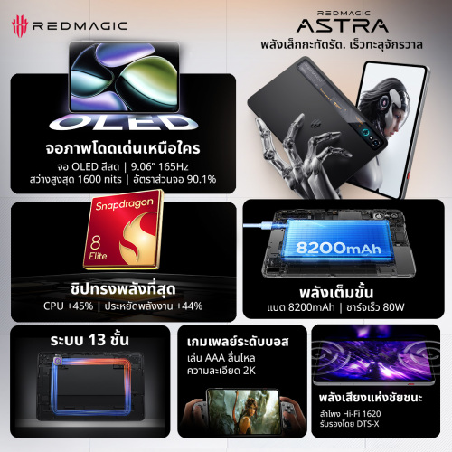 Product Details Reviews (0) Add to Cart Home Product Details [เปิดตัวใหม] REDMAGIC Astra Gaming Tablet | แท็บเล็ตแอนดรอยด์ที่ทรงพลังที่สุด | หน้าจอ OLED ที่สมบูรณ์แบบระดับพิกเซล | ระบบระบายความร้อน 13 ชั้น 12+256GB Starfrost One 5 3 [เปิดตัวใหม] REDMAGIC Astra Gaming Tablet | แท็บเล็ตแอนดรอยด์ที่ทรงพลังที่สุด | หน้าจอ OLED ที่สมบูรณ์แบบระดับพิกเซล | ระบบระบายความร้อน 13 ชั้น 12+256GB Starfrost One ฿ 26,899.00 33,919.00 21%off Tcoin Earn up to Tcoins Tcoins can be used as a deduction for the next purchase of Thisshop product; the received Tcoins will be calculated based on the actual payment amount. Ship to Province City Area Shipping Quantity Add to Cart Buy Now TPayLater Product Details Reviews (0) After Sale Support