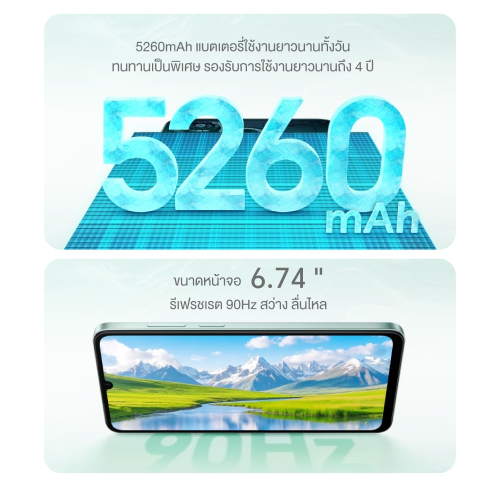 5,100 mAh (ค่าความจุในการจ่ายกระแสไฟของแบตเตอรี่), 5260mAh (ค่าความจุแบตเตอรี่โดยทั่วไป)