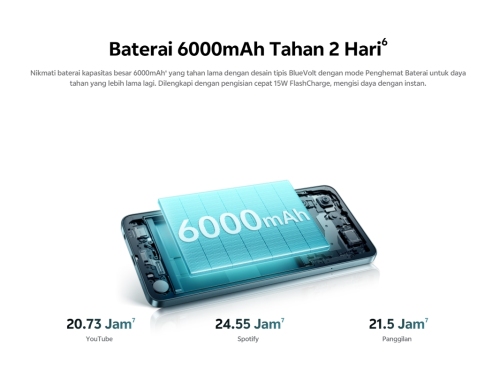 ✔️แบตเตอรี่ : ขนาด 6000mAh สนับสนุนชาร์จเร็วผ่านสาย 15W