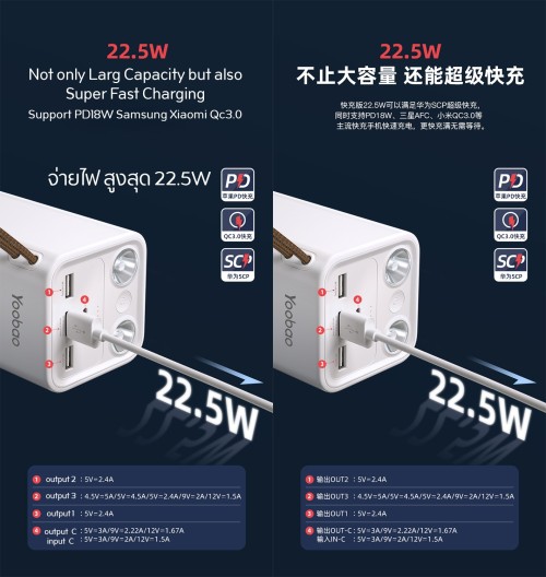Yoobao H5 50000mAh Quick Charging PD22.5W Power Bank แบตเตอรี่สำรอง ไฟฉาย 2 ช่อง H5 ดำ 30001+50000mAh