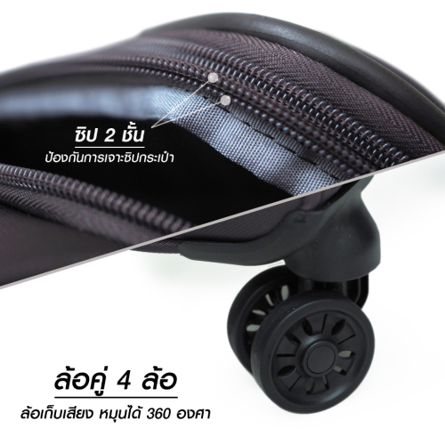 - ล้อคู่ 4 ล้อหมุนได้ 360 องศา รอบทิศทาง เพิ่มความสะดวกสบายขณะเดินทาง