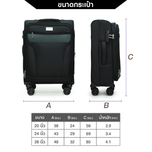 ▶ ขนาด 20 นิ้ว 38 x 24 x 58 (กว้าง x หนา x สูง : ซม.) น้ำหนัก 2.9 Kg.