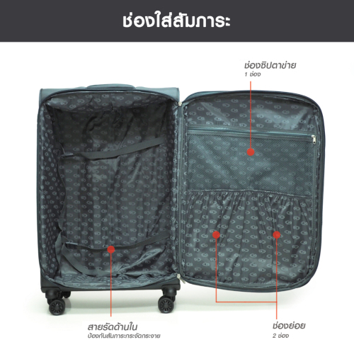 - มีสายรัดด้านในตัวกระเป๋า ป้องกันสัมภาระกระจัดกระจายเวลาเคลื่อนย้าย