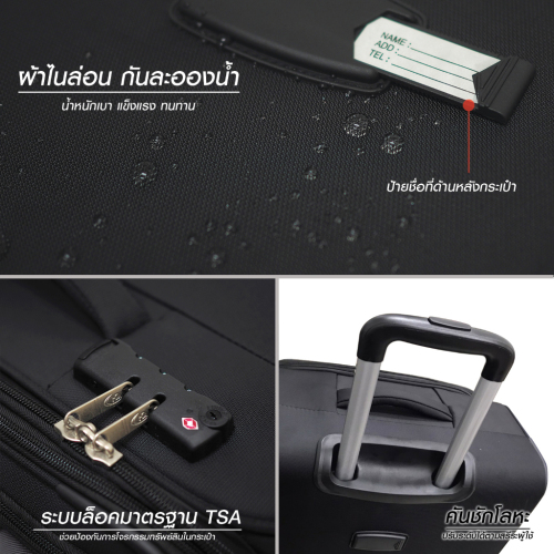 - มีระบบล็อคหางซิป 3 รหัส มาตรฐาน TSA ช่วยเพิ่มความปลอดภัยในทรัพย์สินระหว่างการเดินทาง (ขนาด 16 นิ้ว เป็น Standard Lock)