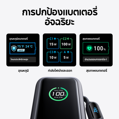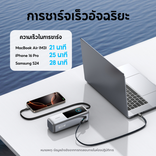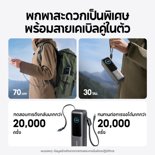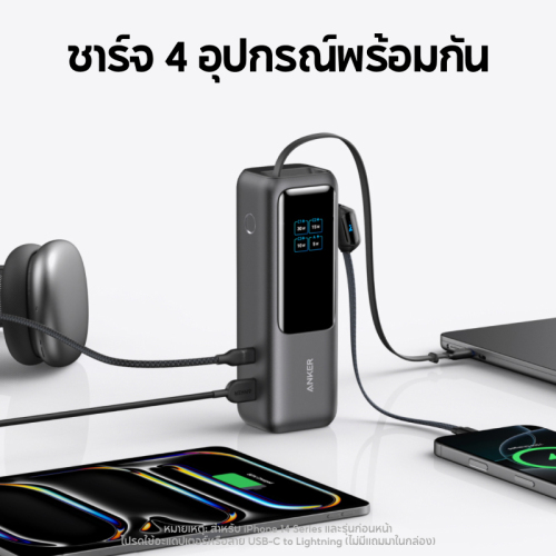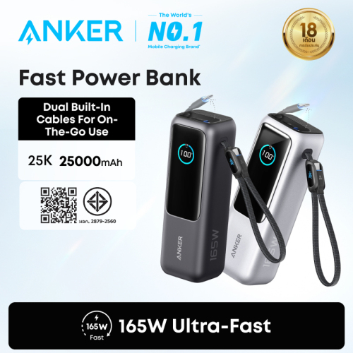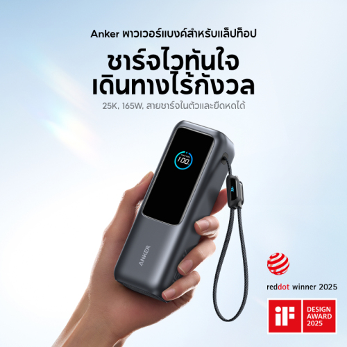 Anker พาวเวอร์แบงค์สำหรับแล็ปท็อป, เครื่องชาร์จพกพา 25,000mAh พร้อมพอร์ต USB-C 3 พอร์ต 165W สำหรับการชาร์จหลายอุปกรณ์, มีสายชาร์จในตัวและสายดึงได้, สำหรับ iPhone 17/16/15 ทุกรุ่น, MacBook, Samsung และอื่นๆ — เป็นเพาเวอร์แบงค์แท้ One/สีขาว