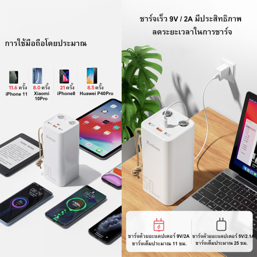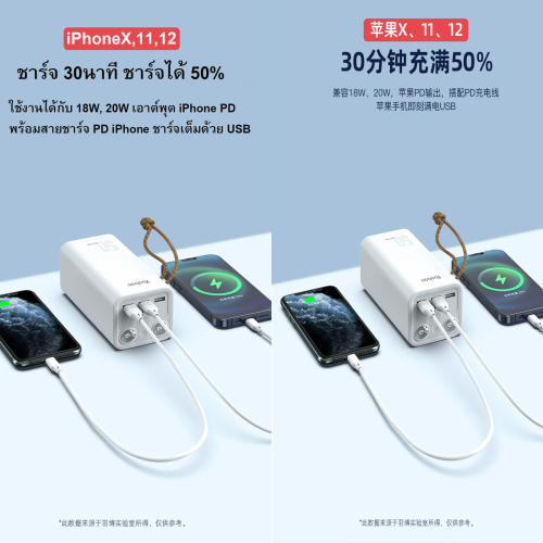 ผลิตจากพลาสติกเกรดA ดีไซน์หรูหรา ความจุเยอะ ชาร์จแบตได้หลายรอบ ใช้งานได้ดี