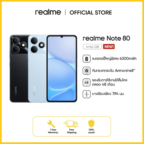 Product Details Reviews (0) Add to Cart Home Product Details realme Note 80 (4+64GB) 5 1 realme Note 80 (4+64GB) 0% Sold Ends in 04: 21: 30 ฿ 3,699.00 1%off Tcoin Earn up to Tcoins Tcoins can be used as a deduction for the next purchase of Thisshop product; the received Tcoins will be calculated based on the actual payment amount. Ship to Province City Area Shipping Quantity Add to Cart Buy Now TPayLater Product Details Reviews (0) After Sale Support